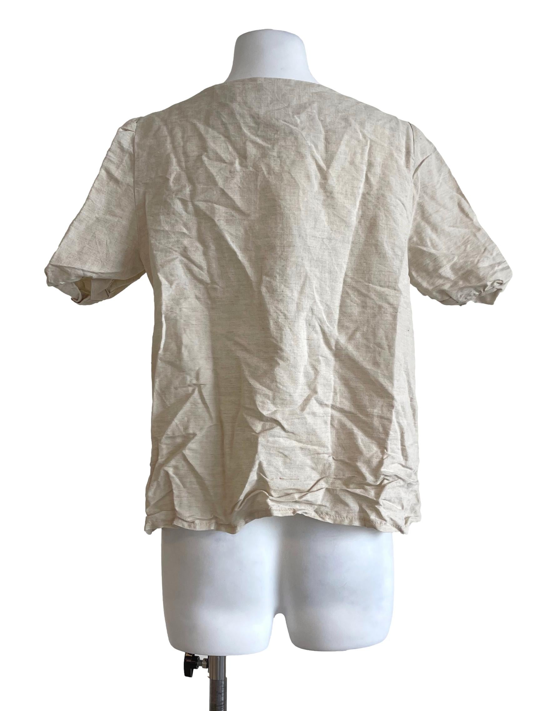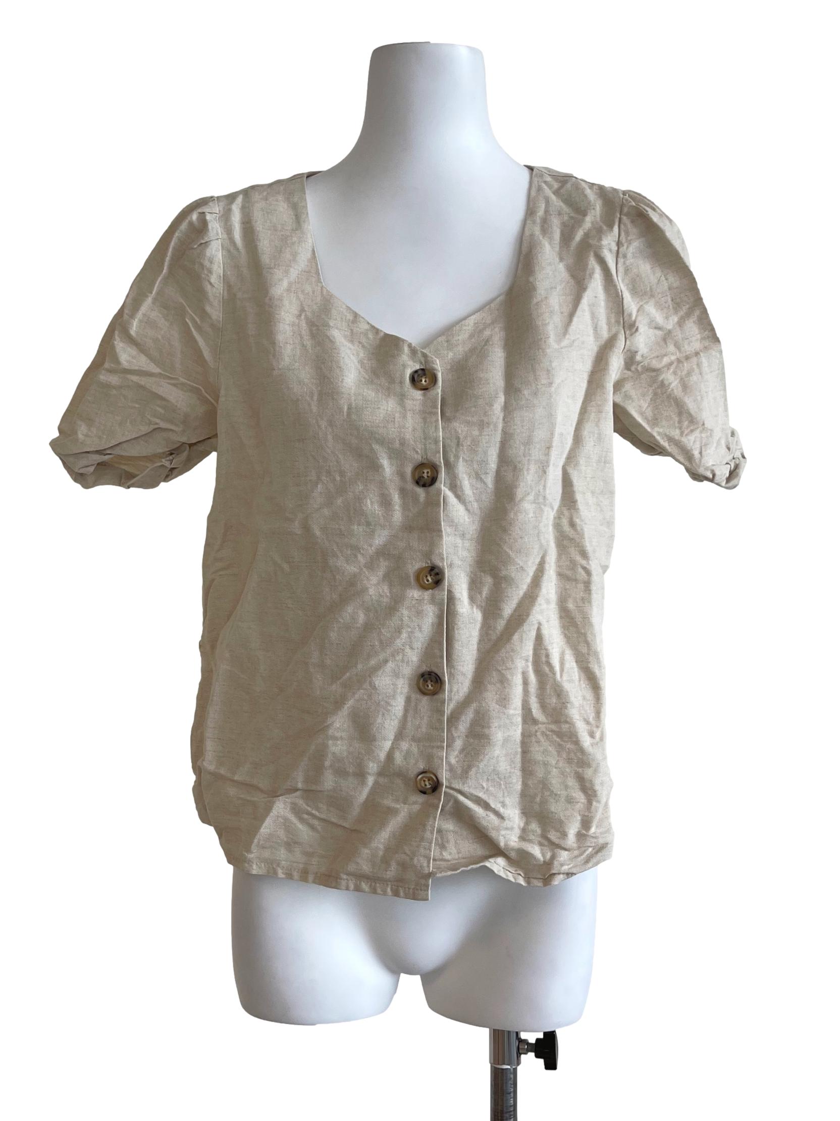 Beige Buttoned Neckline Top TEM