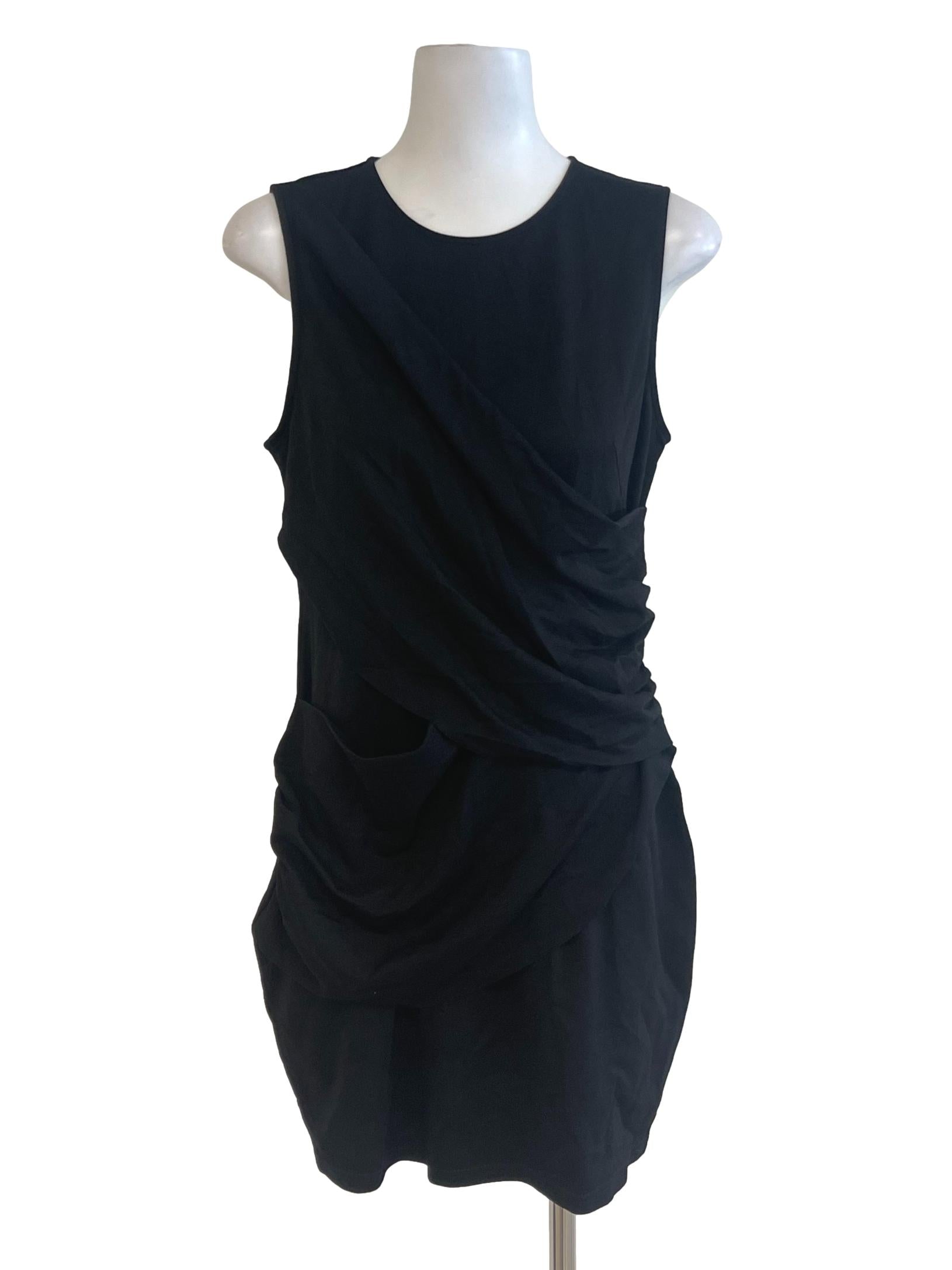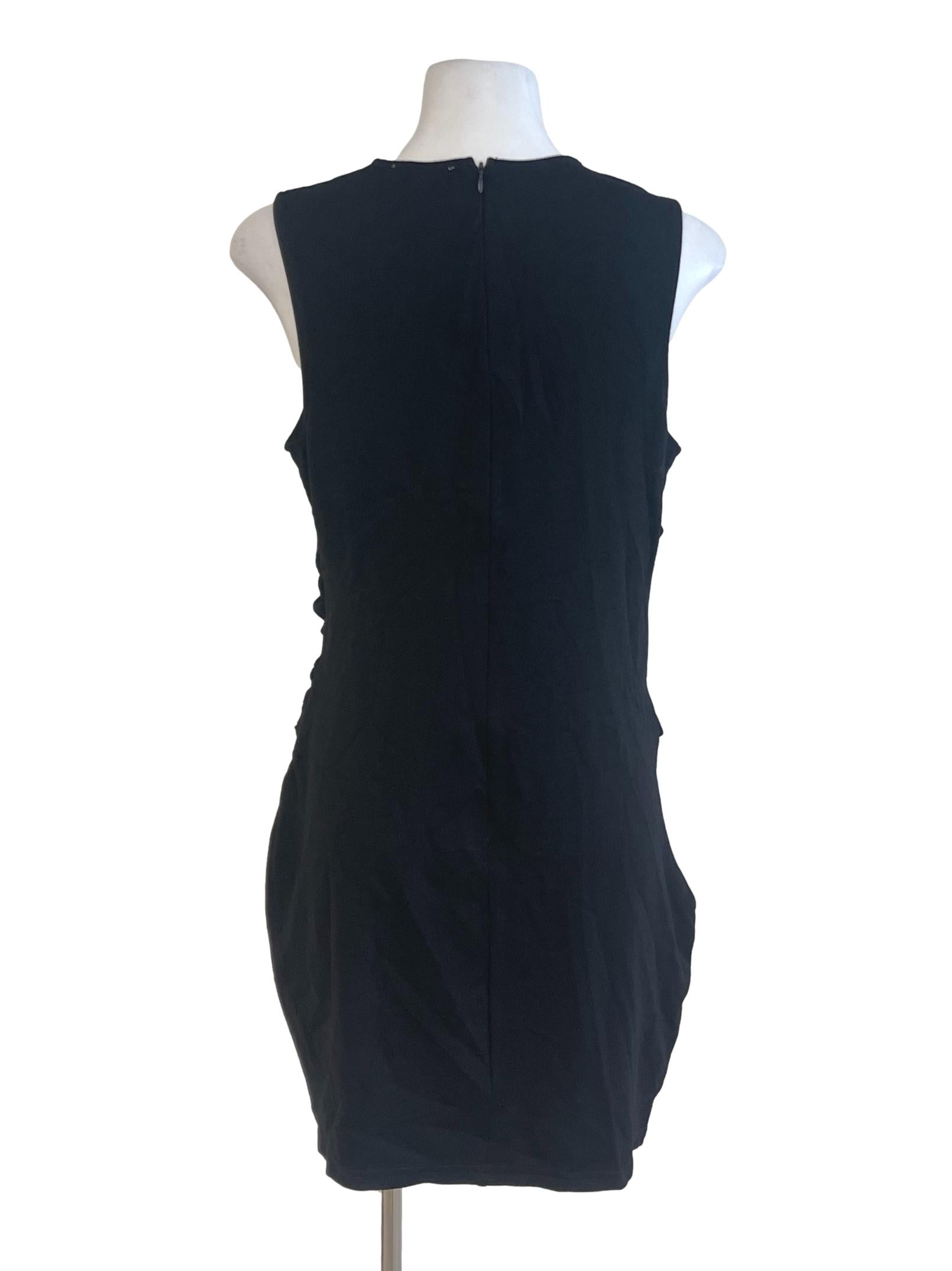 Black Jewel Neck Mini Wrap Bust Dress