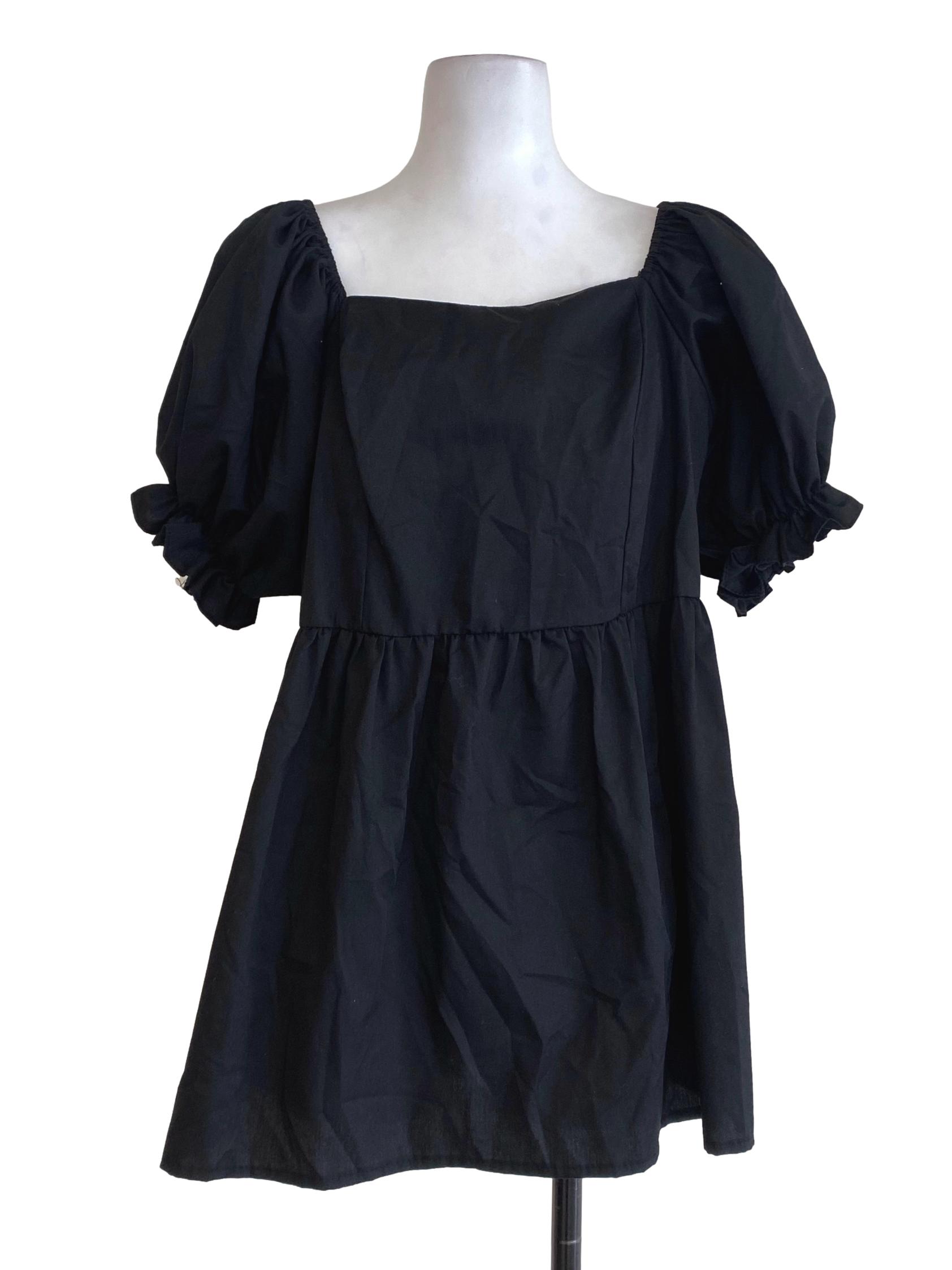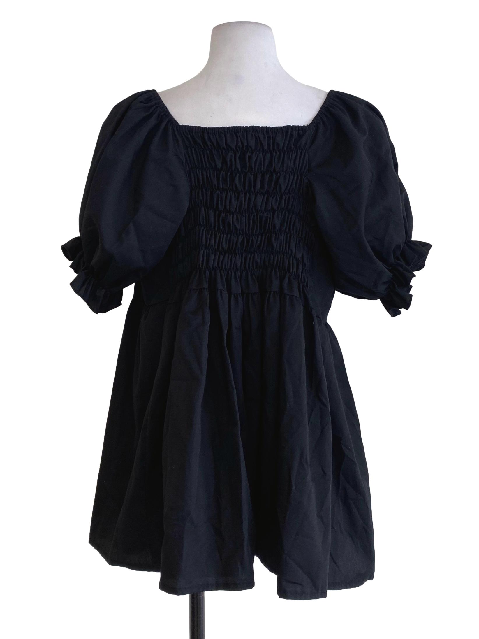 Black Mini Blouson Dress