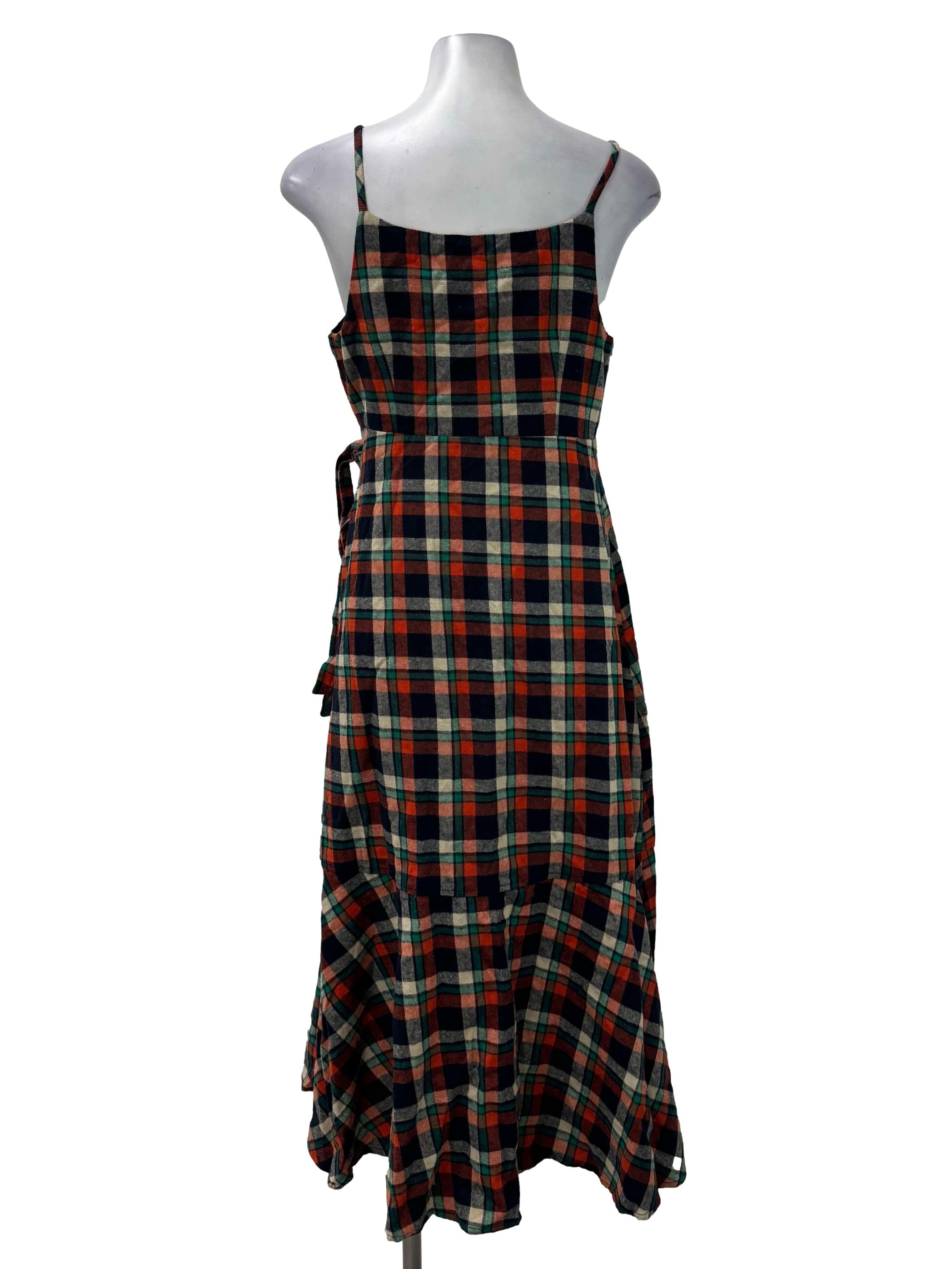 Checkered Self Wrap Ruffle Dress