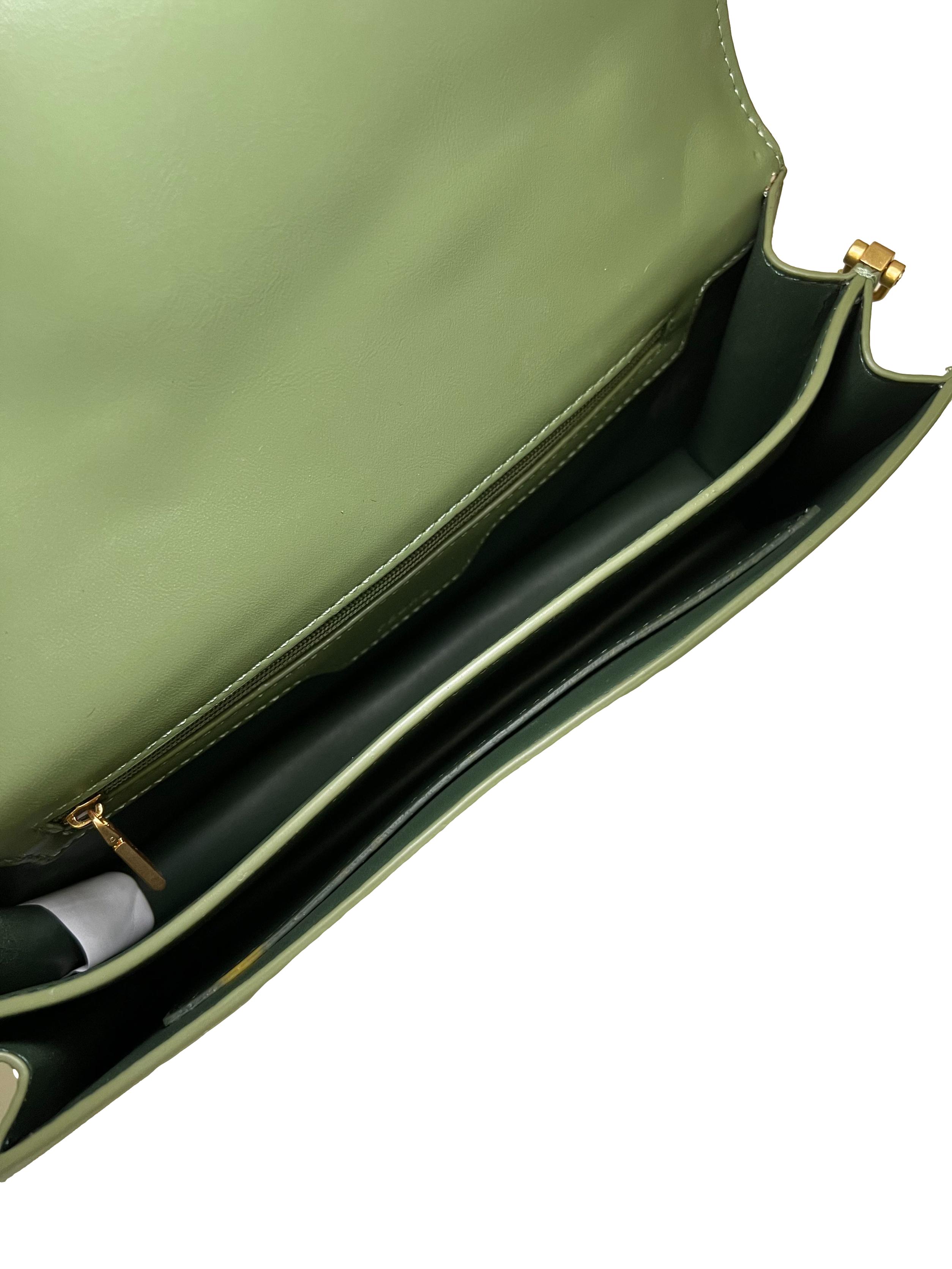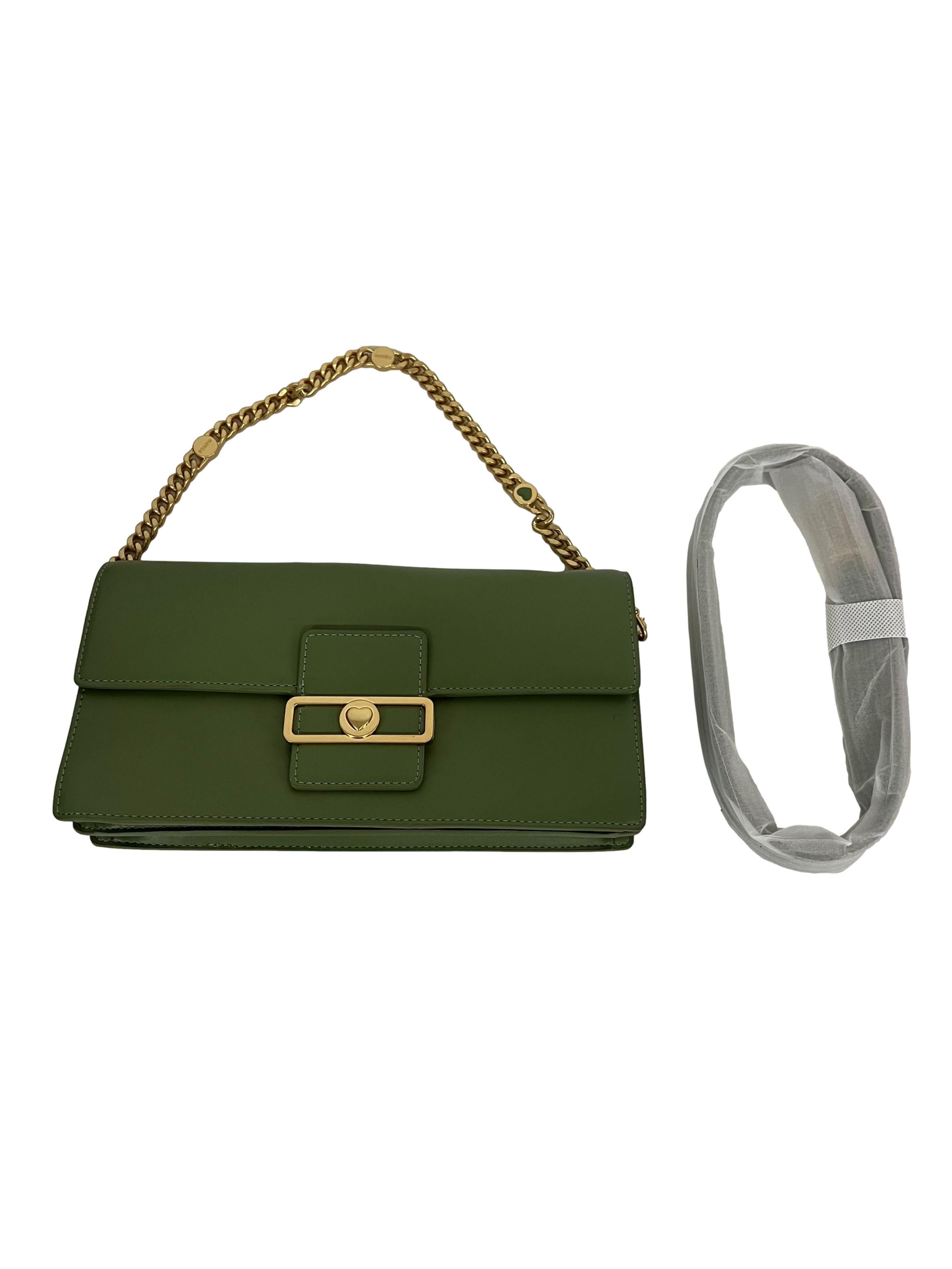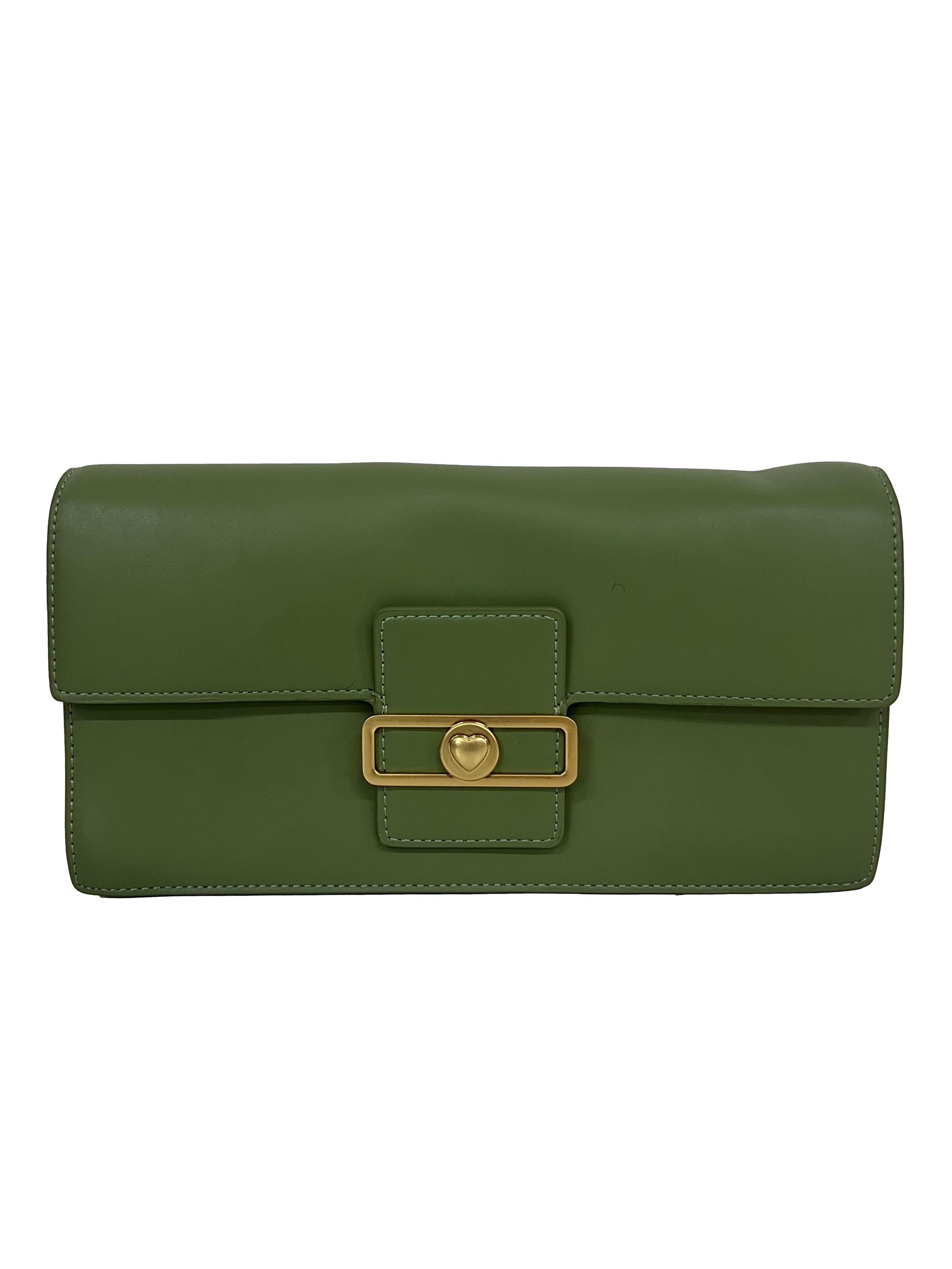 Green Leather Shoulder Bag With Heart Clasp Crossbody Bag CSN