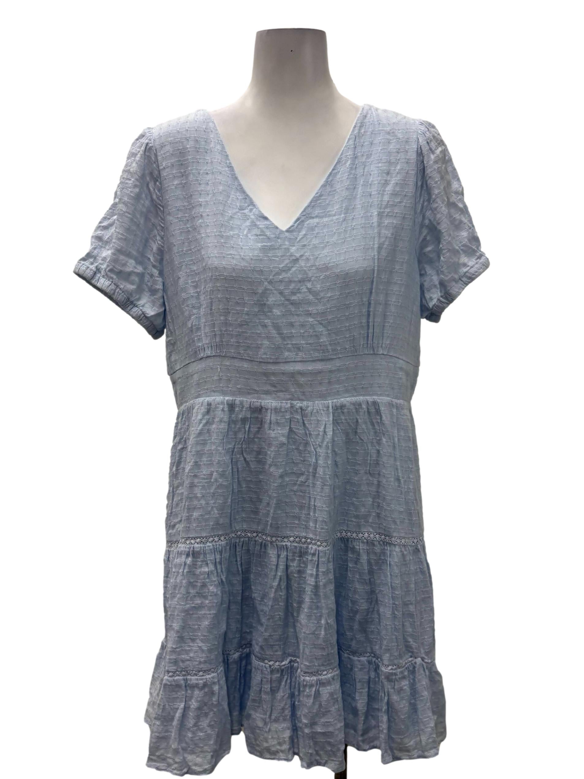 Light Blue V-Neck Floral Lace Dress