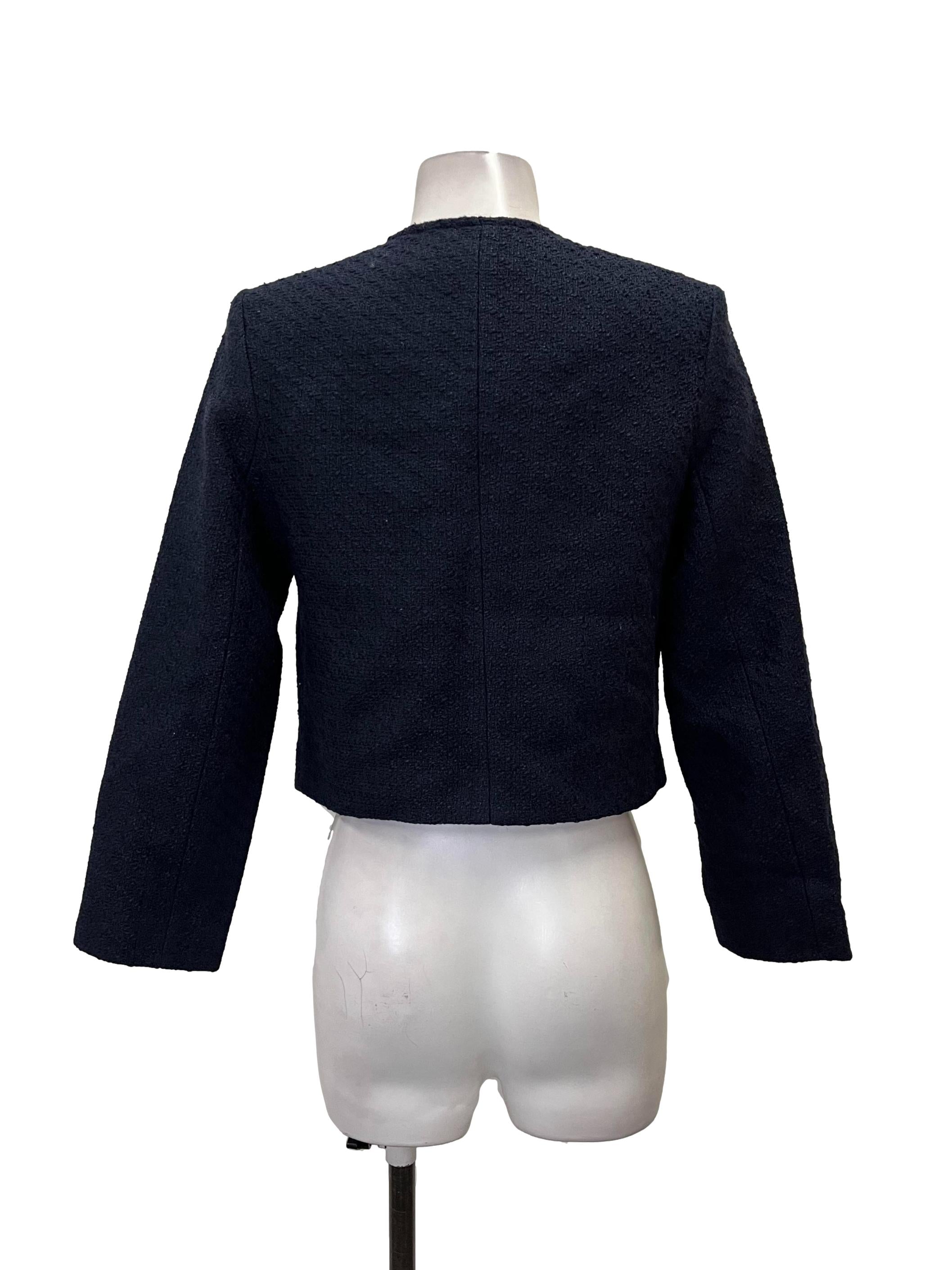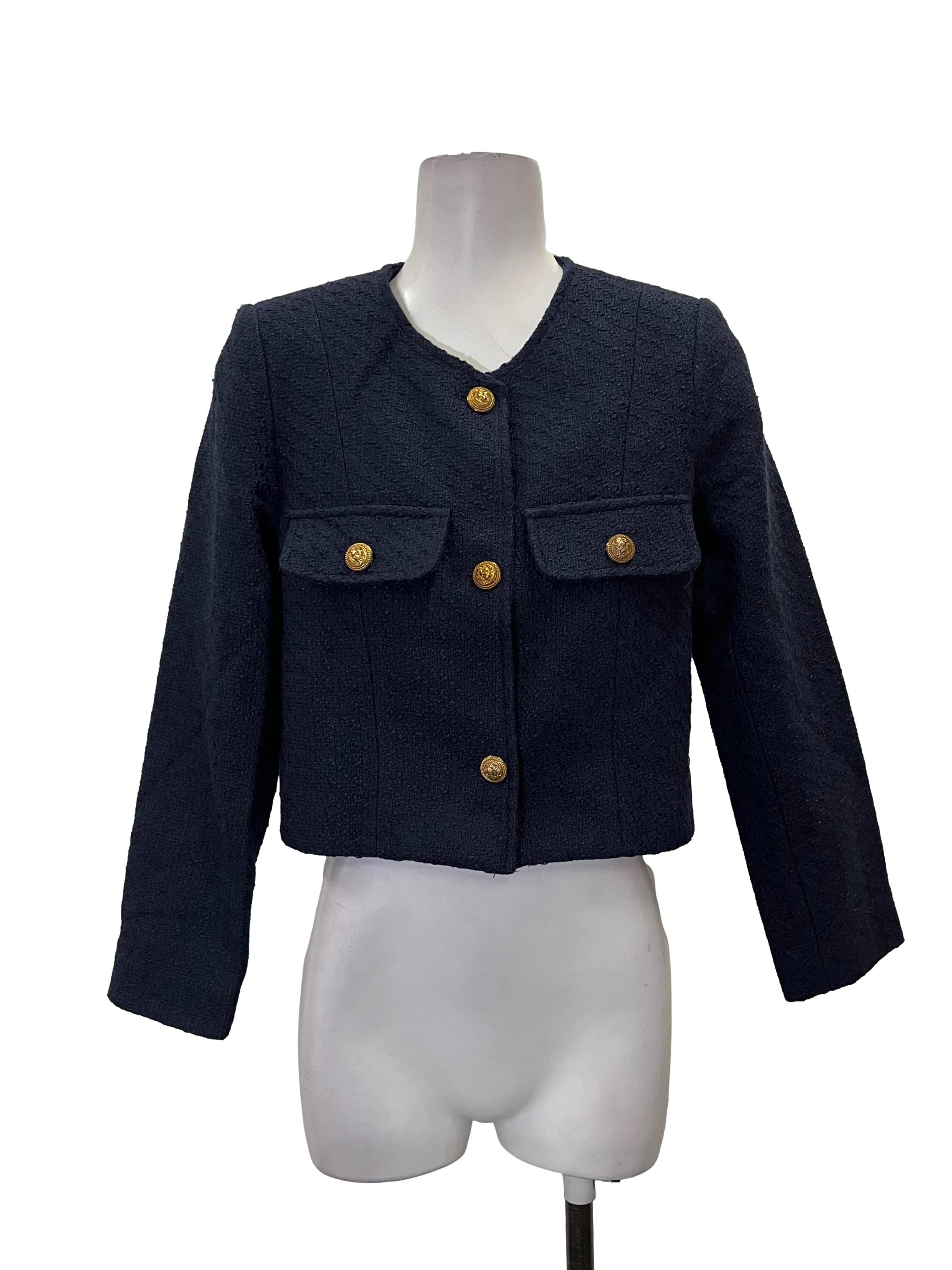 Navy Blue With Goldish Buttons Tweed Cropped Jacket