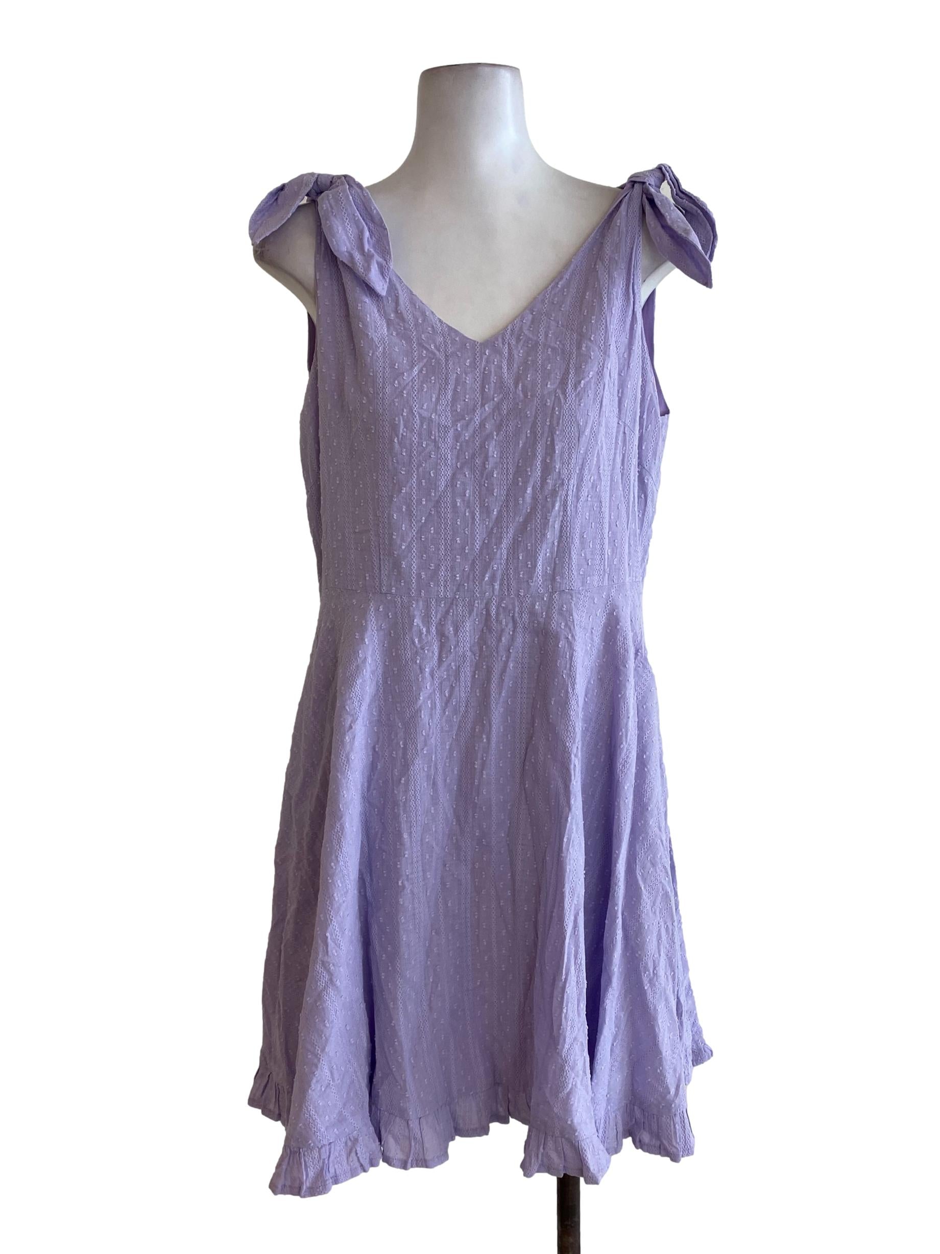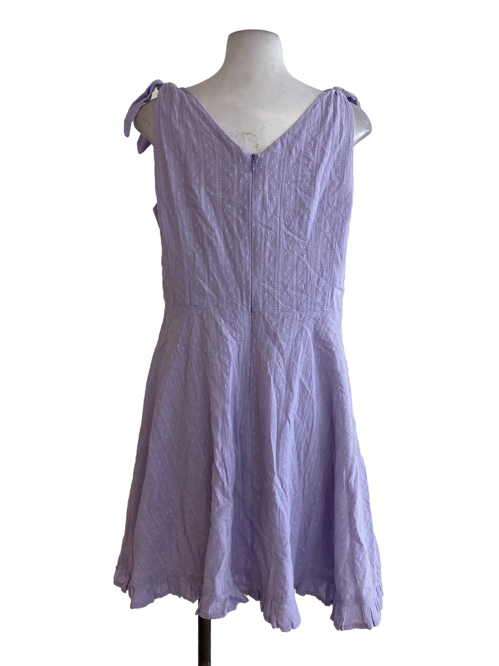 Purple Embroidered V Neck Dress