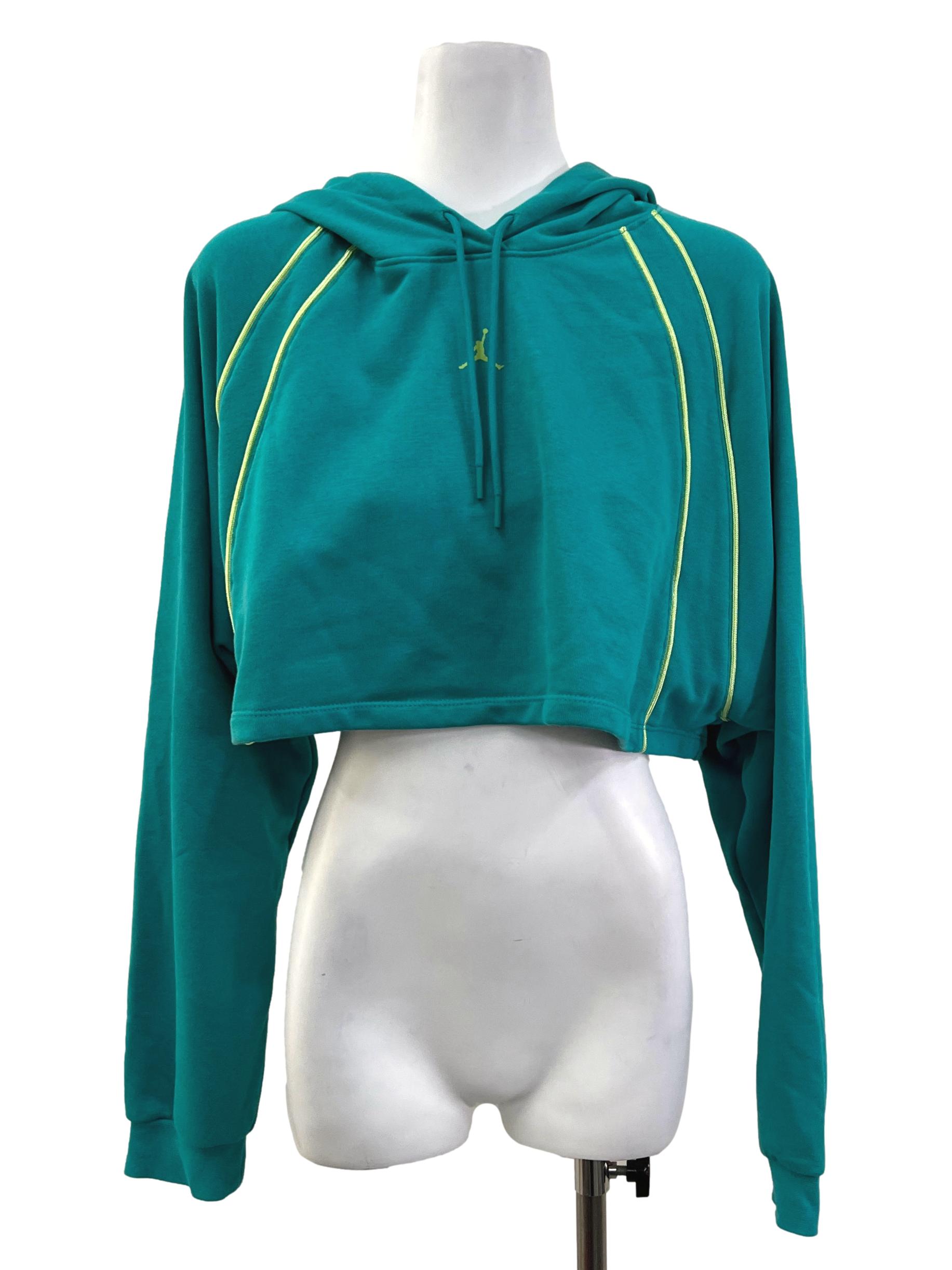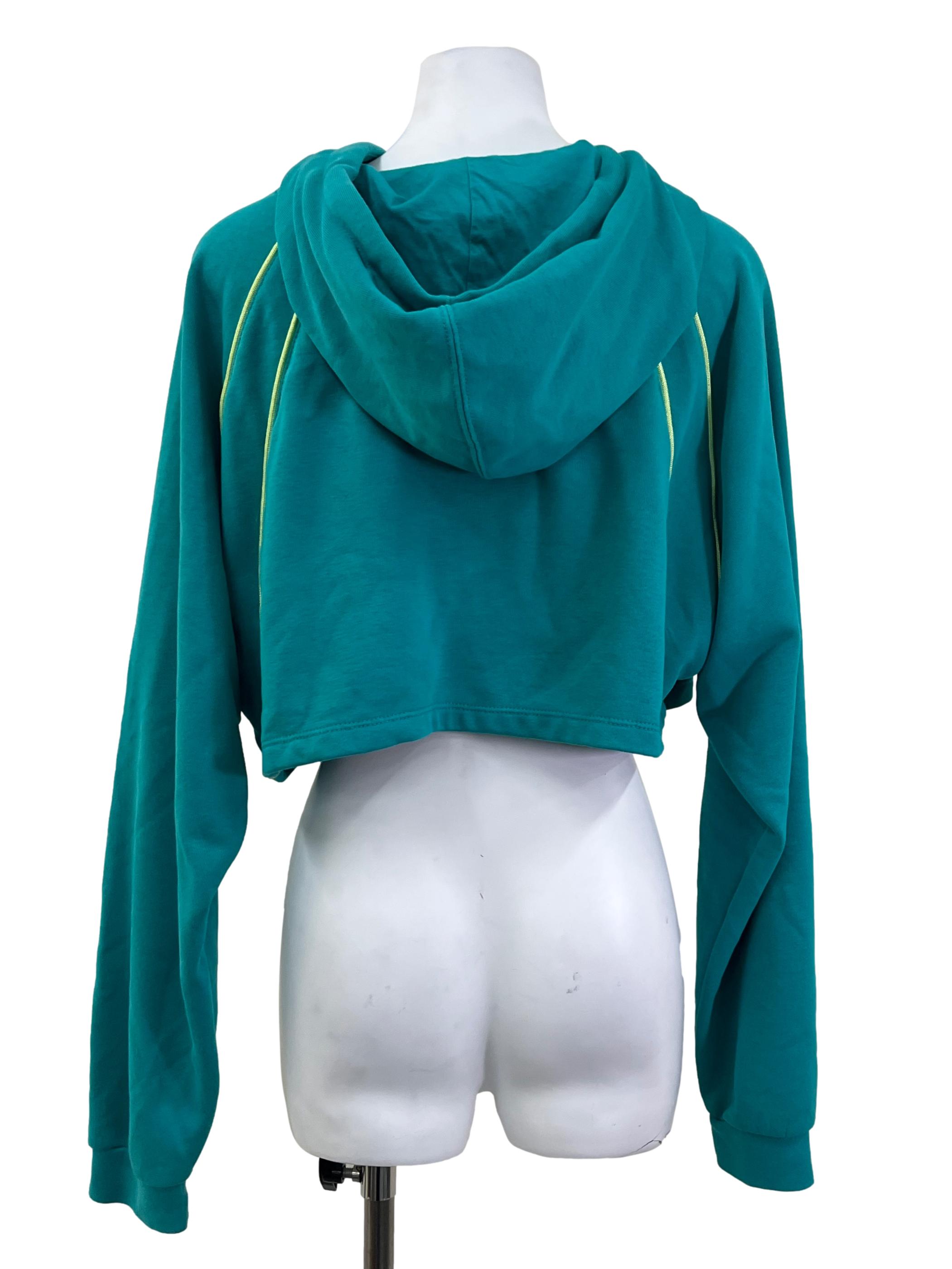 Turquoise Yellow Contrast Cropped Hoodie