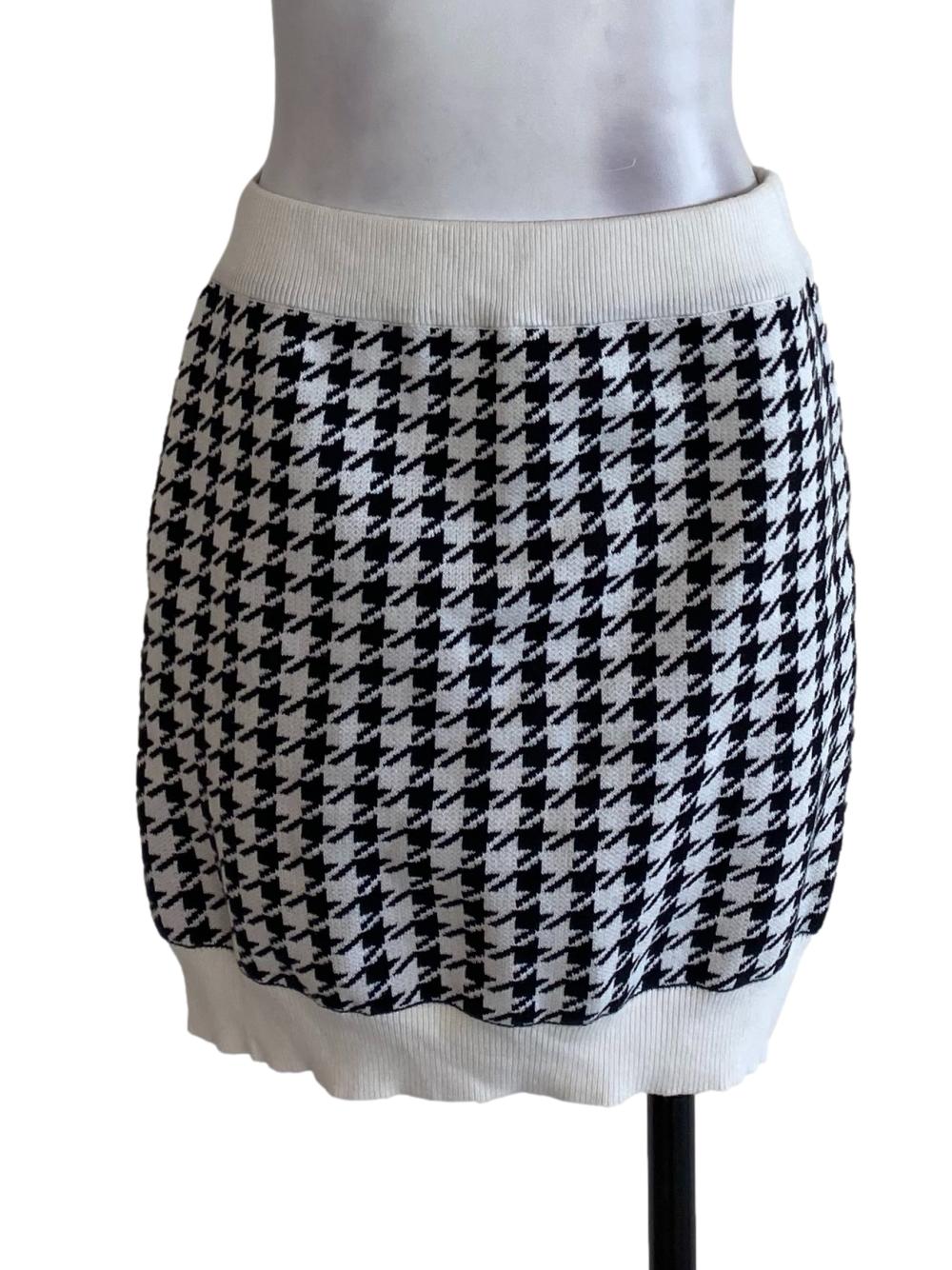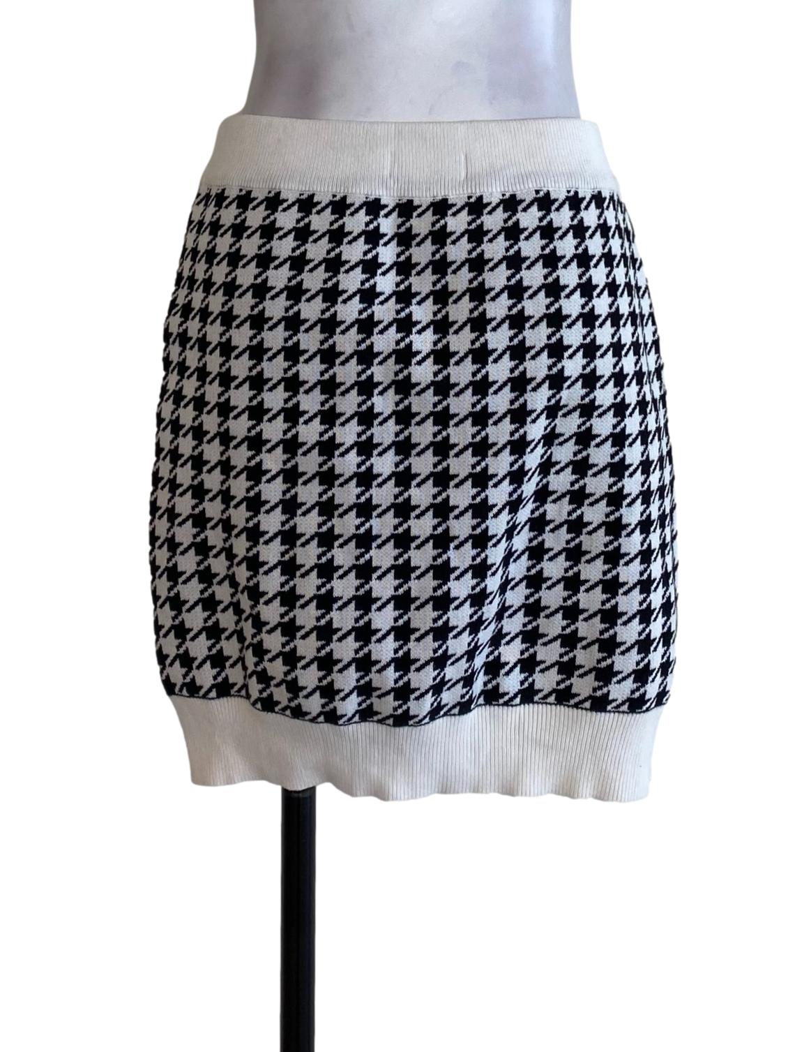 White Black Houndstooth Knit Skirt