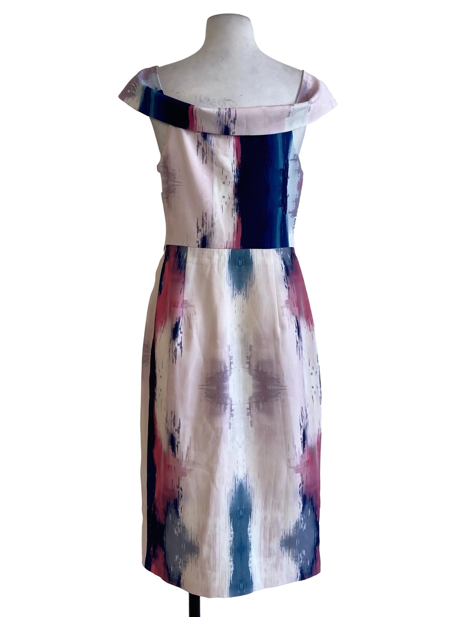 White & Blue Asymmetric Drop Shoulder Shift Dress