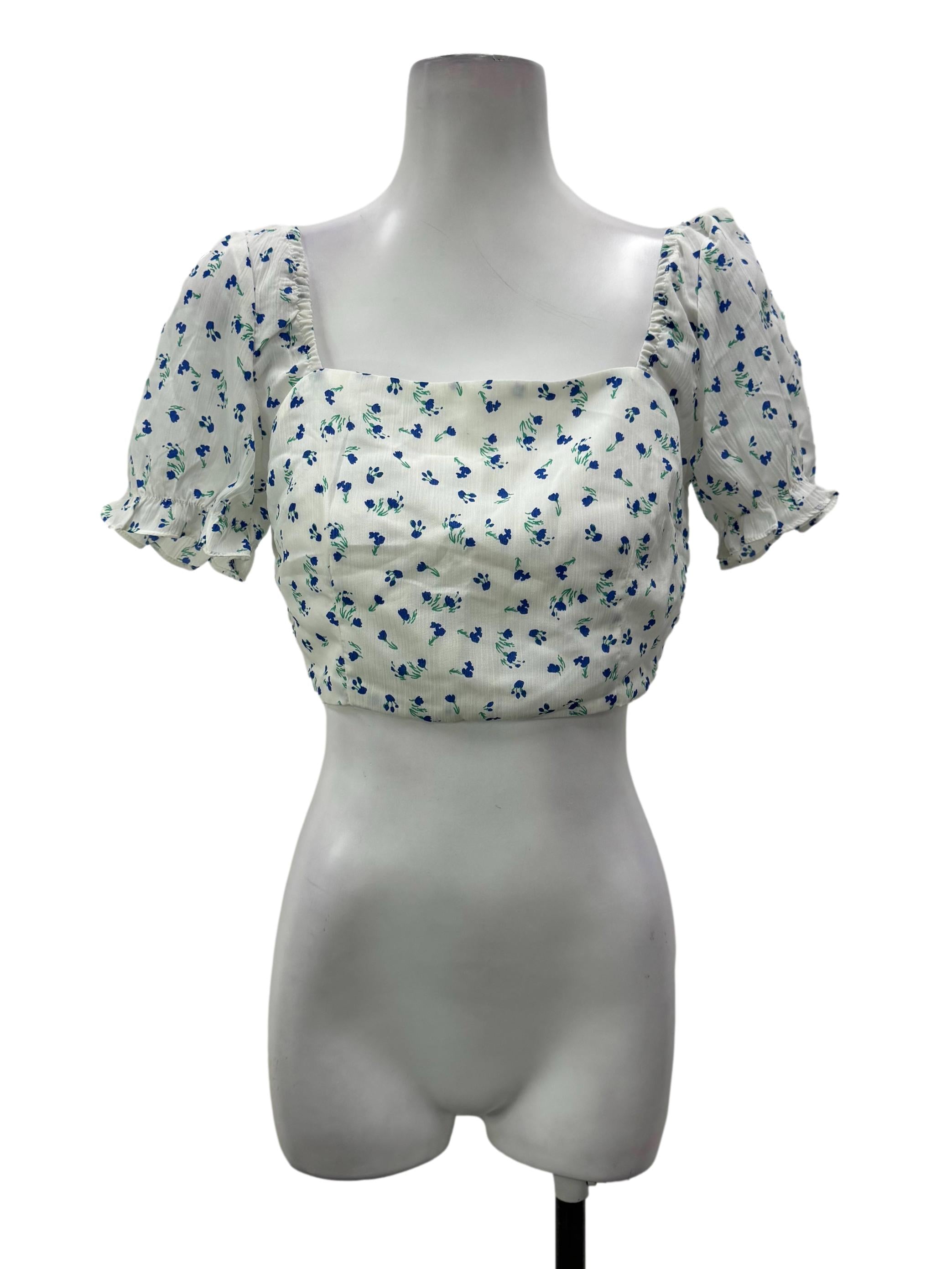 White Flower Square Blouse
