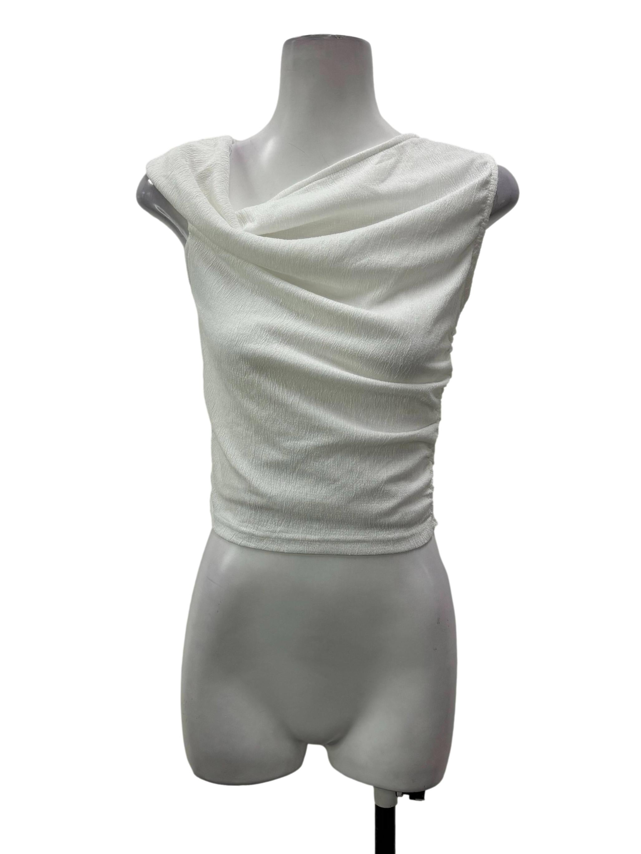 White Textured Slanted Blouse
