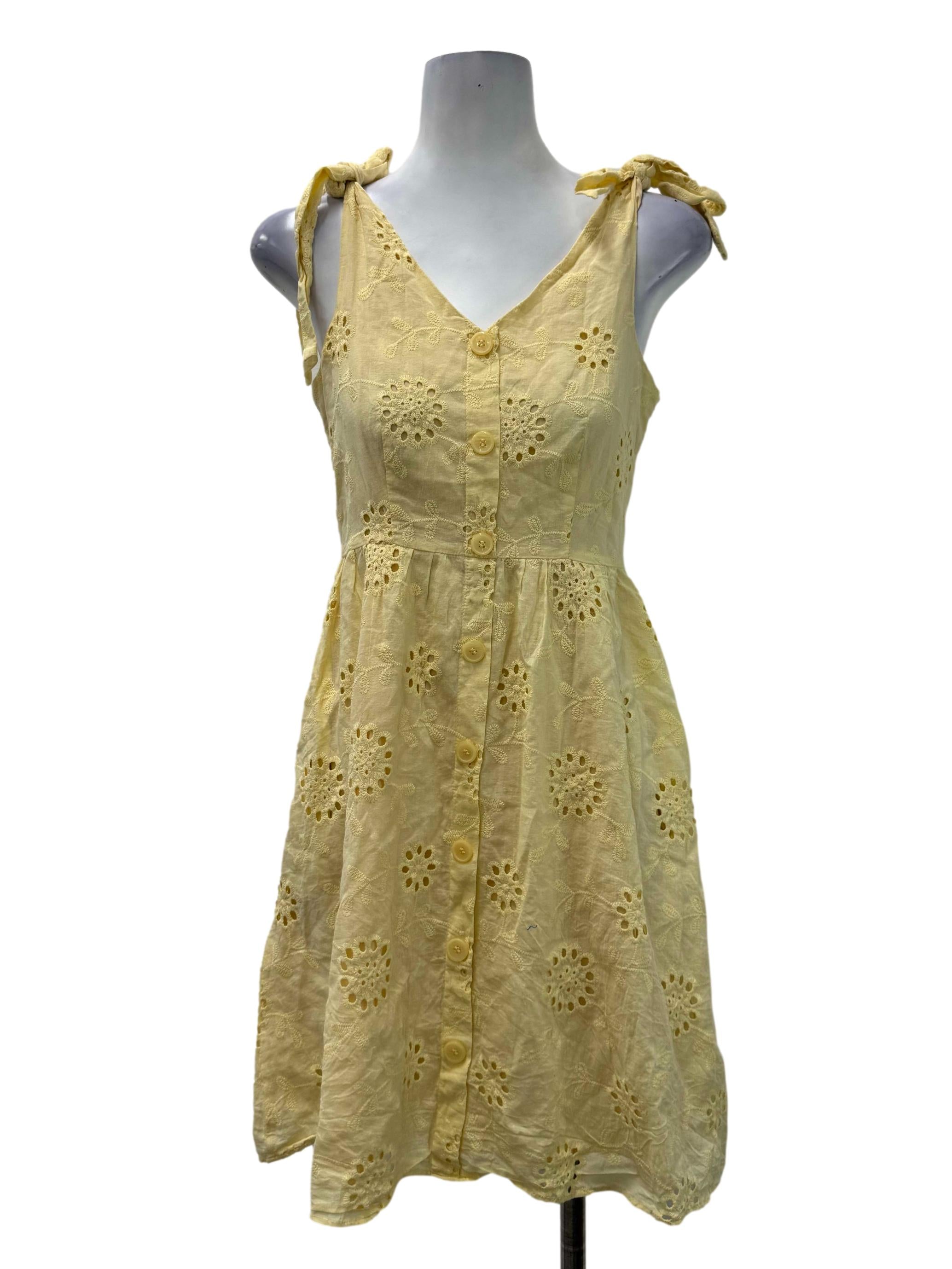 Yellow Eyelet Self Tie Dress